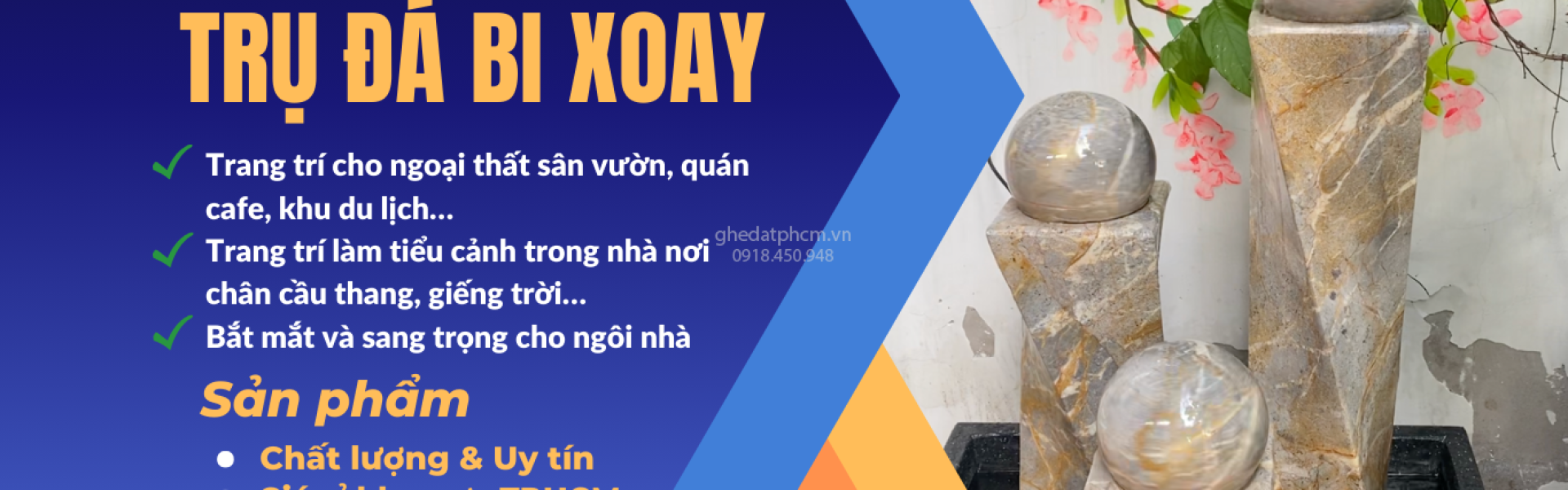 Với kinh nghiệm và sự nỗ lực của toàn thể cán bộ nhân viên của công ty cho ra rất nhiều các sản phẩm và mẫu mã bền đẹp chất lượng cao. Hoạt động chính: sản xuất kinh doanh buôn bán sỉ và lẻ: ghế đá sân vườn, ghế đá công viên, trường học, ghế băng, ghế đôn, bàn elíp, bàn tròn, lư hương đá mài, lu nước phong thuỷ, trụ đá bi xoay với màu sắc đa dạng, độ bóng cao, bền màu, nhiều kiểu dáng đẹp từng chi tiết. Hiện sản phẩm ghế đá giá rẻ của chúng tôi đã có mặt ở nhều nơi trên các tỉnh thành của cả nước.