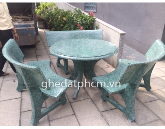 Bộ Bàn 3 Ghế Đá Tròn Xanh
