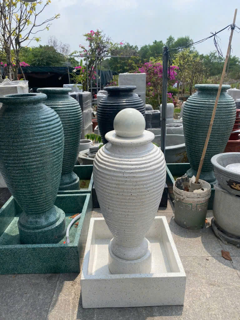 • Lu nước đá mài: Đây là loại lu được làm từ bột đá kết hợp với các vật liệu khác và được mài nhẵn bề mặt, tạo cảm giác lì, mịn và chắc chắn. Lu đá mài có trọng lượng nhẹ hơn đá tự nhiên, dễ dàng di chuyển và có nhiều màu sắc, kiểu dáng hiện đại, phù hợp với không gian có phong cách tối giản hoặc đương đại. Giá thành của lu đá mài cũng thường phải chăng hơn so với lu đá tự nhiên nguyên khối.